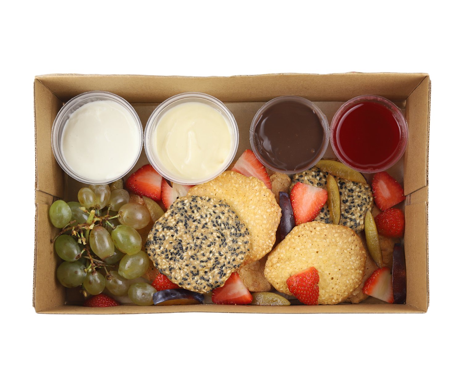 შპეკი, პროშუტო, სალიამი, ჩორიზო, პარმეზანი, ყველი ლურჯი ობით, თხის ყველი, გაუდა, ლეღვის მურაბა ნიგვზით, წიწაკის მურაბა, გრისინი, ბაგეტი, ზეთისხილი.